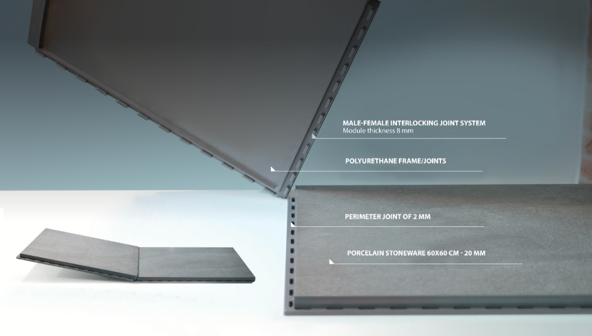 Click and Go combine les avantages des hautes performances techniques de la céramique à un système exclusif et innovant à encastrement pour une pose des revêtements de sol intérieurs et extérieurs extrêmement facile, rapide et polyvalente.